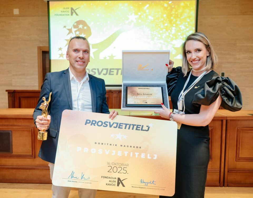 Učitelj Osnovne škole “Oktoih” Sava Kovačević dobitnik je godišnje nagrade Prosvetitelj 2025, koju dodijeljuje Fondacija Alek Kavčić. U trci za ovu prestižnu nagradu bili su još i finalisti: vaspitačica JPU “Ljubica Popović” Biljana Rolović i Ivica Šćepanović, trener i nastavnik fizičkog obrazovanja.